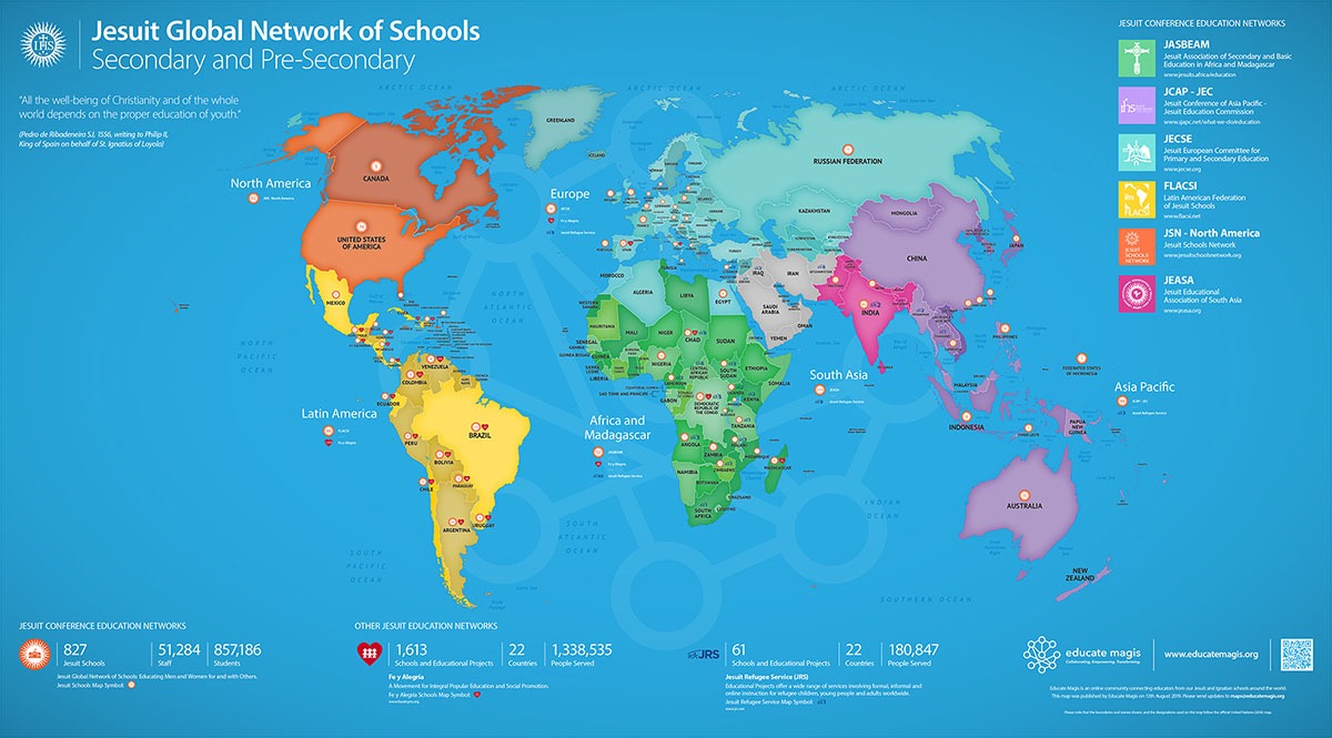 The Jesuit Global Network of Schools (JGNS) expresses the collective global identity of the Jesuit and Companion secondary and pre-secondary schools and networks committed to the Jesuit mission of justice and reconciliation (with God, within Humanity and with Creation) in our world today. The JGNS comprises Jesuit schools and companion schools in mission that belong to the Educational Networks of the various Conferences of Provincials such as: